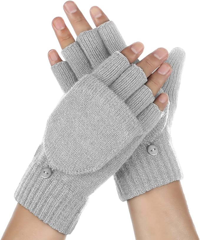 【Convenient & Practical Touch Screen Gloves】Compared to other wool knit gloves, you can choose to wear these gloves in fingerless or mitten way. When you work with touch screens, no longer need to take off the whole glove, just flip the glove top and fix it with button, to turn into gloves with finger holes, keeping you warm while taping the screen smoothly