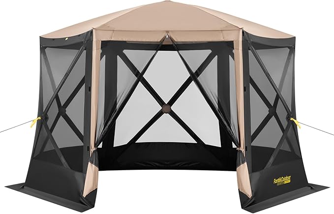 Camping Canopy Gazebo Tent, 8 Person Pop-up Screen Tent for Camping 6 Sided Instant Shelter Tent with 2 Wind Panels & Carrying Bag Easy Set up in 60 Seconds