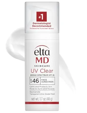 EltaMD UV Clear is an oil free sunscreen with Zinc Oxide that blends in effortlessly and leaves no white cast, Helps protect against breakouts and is an essential acne sunscreen for those with acne prone skin care concerns, This travel size sunscreen pump bottle is the perfect companion for bringing on the go as your daily face sunscreen, Face sunscreen for sensitive skin helps soothe sensitive skin types prone to acne, rosacea, and hyperpigmentation, This facial sunscreen can easily be worn alone or under makeup and is an ideal face sunscreen for oily skin