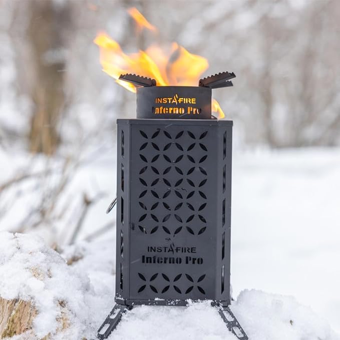 - FIREBOX – The built-in firebox protects your flame from the elements. It’s easy to start a fire with the Inferno Pro, no matter your experience!