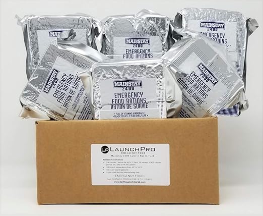 LaunchPro Emergency Preparedness Pack contains six (6) packs of Mainstay Emergency Food Rations 2400 Calorie Bars is packaged in a box with the LaunchPro Logo