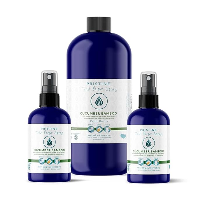 Pristine Toilet Paper Spray: As Seen on Shark Tank, the More Natural Alternative to Flushable Wet Wipes & Personal Cleansing Wipes, Spray Dry Toilet Paper to Create a Flushable Wipe – Cucumber Bamboo