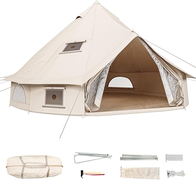 YITAHOME Canvas Tent Bell Tent Yurt Tent 4 Season Waterproof Glamping Tents w/Stove Jack for Family Camping Outdoor Hunting Party 13/16.4/20FT